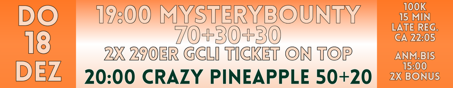 20:00 Uhr startet das Crazy Pineapple 50er mit 60K und 12' Leveln. (50+20)