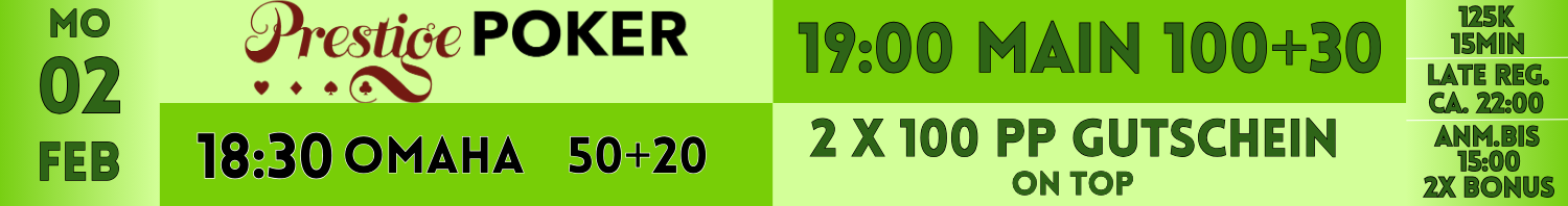 18:30 Uhr beginnt das Monday Omaha mit Ranking.