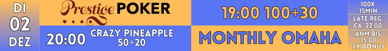 18:30 Uhr beginnt das Monday Omaha mit Ranking.