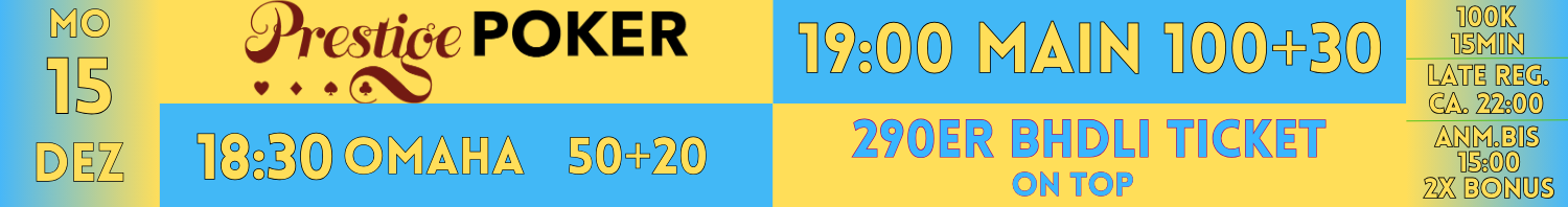 19:00 Uhr startet das Friday Main Freezeout. (200+45).