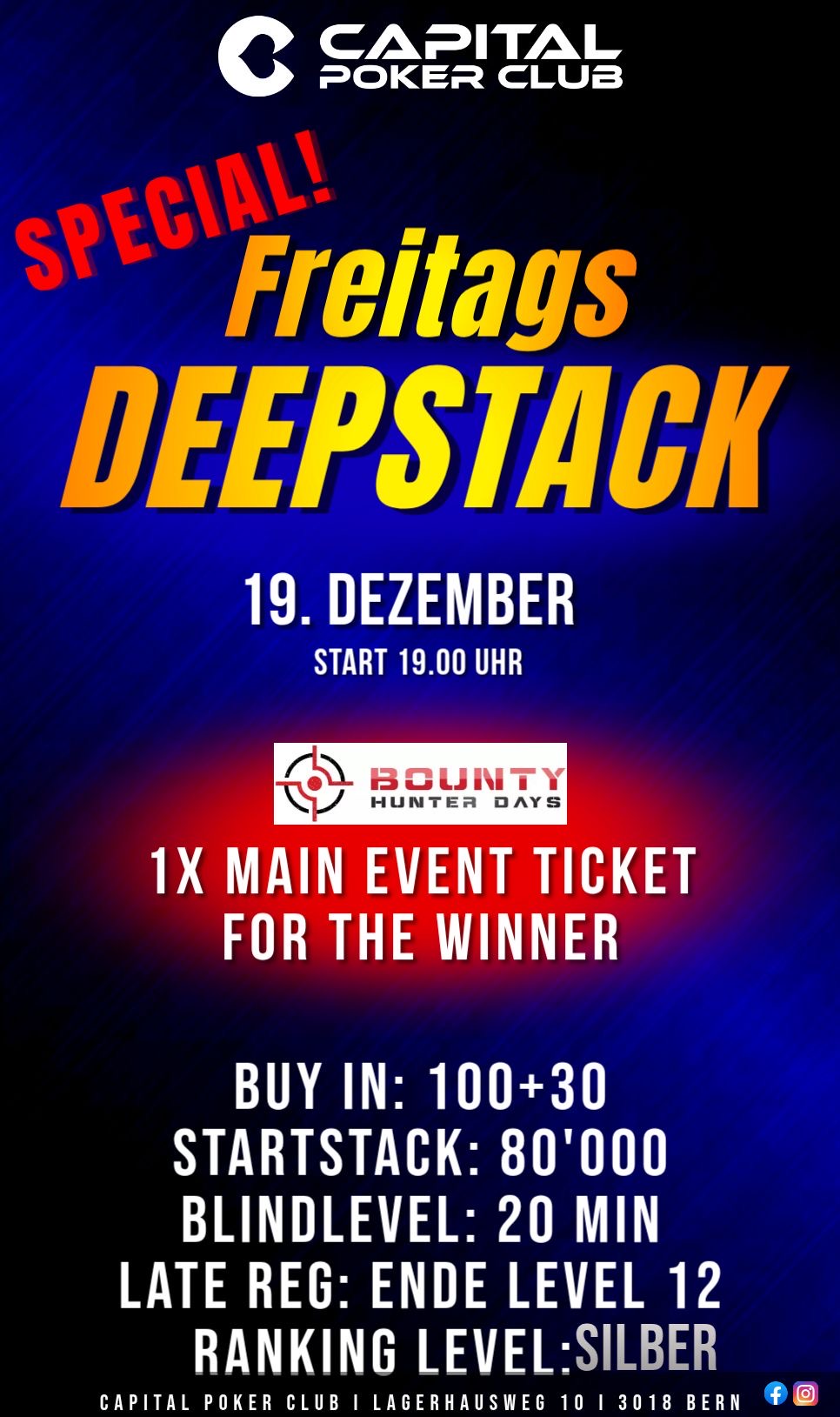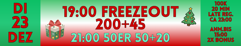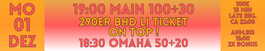19:00 Uhr startet das Friday Main Freezeout. (200+45).