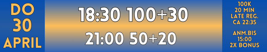 Bei Anmeldung im Main 4h vor Start und Einstieg bis Ende 2. Level im Main 10K Bonus (auch bei Re-Entry).