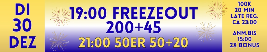 19:00 Uhr startet das 23rd Dec Main Freezeout. (200+45).