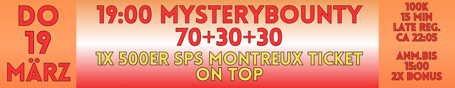 19:00 Uhr startet das Donnerstag Mystery Bounty. (70+30+30).