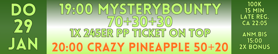 20:00 Uhr startet das Crazy Pineapple 50er mit 60K und 12' Leveln. (50+20)