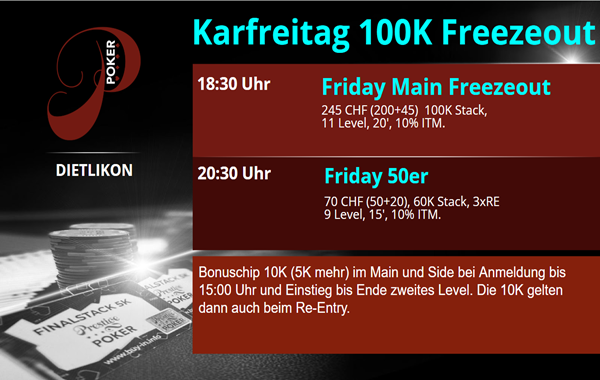 19:00 Uhr startet das Friday Main Freezeout. (200+45).