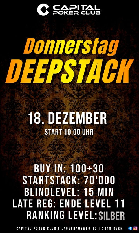 Viele Chips und kurze Levels gab es gestern, den 18. Dezember, beim CHF 100 + 20 Deepstack Turbo (CHF 4.000 GTD) im Grand Casino Liechtenstein (GCLI), ein Deal beendete das Turnier....