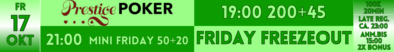 19:00 Uhr startet das Freitag Main Freezeout. (200+45).
