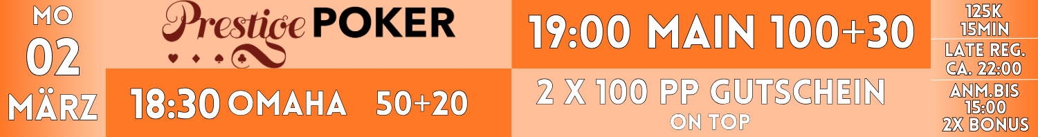 18:30 Uhr beginnt das Monday Omaha mit Ranking.