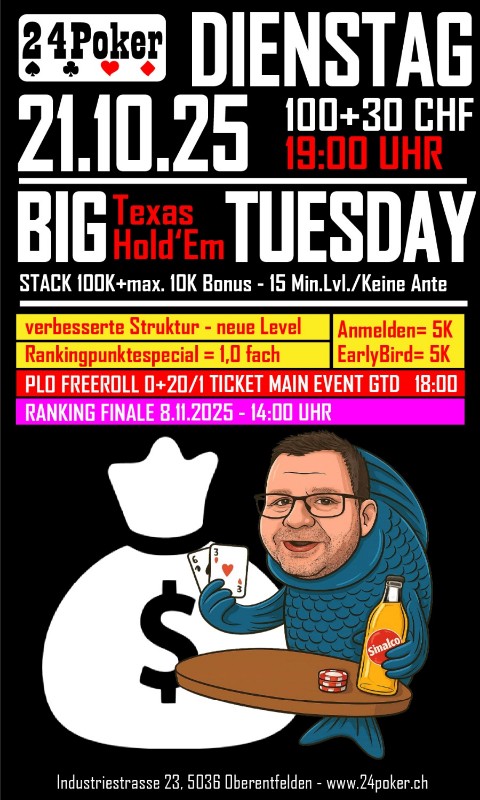 Der Buyin 50+20 mit 60K und 5x RE möglich.