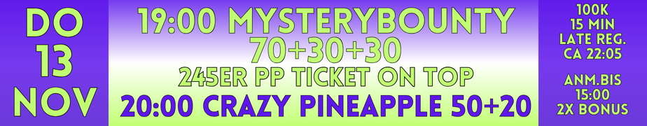 19:00 Uhr das Monday 100er Main ohne Ante. Gewinner erhält ein 500er SPS Campione Ticket on top.