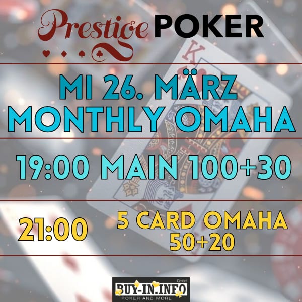 Jeder Spieler, der sich über Buy-in.info bis 20 min vor Turnierstart anmeldet, erhält einen 5K Bonuschip.