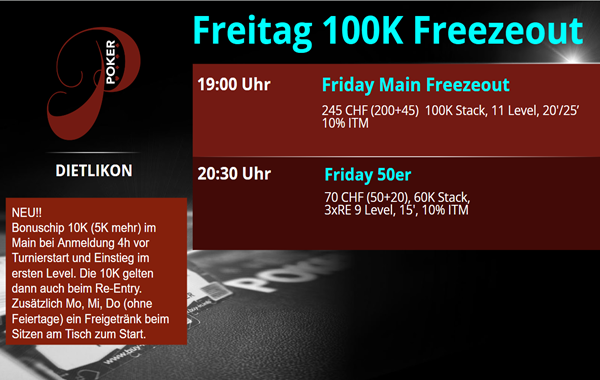 19:00 Uhr startet das Friday Main Freezeout. (200+45).